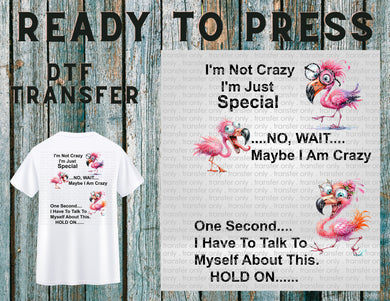 I'm Not Crazy I'm Just Special Flamingo Funny, Ready To Press DTF Transfer![]()  - Regular price
