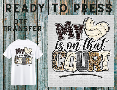 Volleyball Mom: My Heart is on That Court Leopard Ready To Press DTF Transfer![]()  - Regular price
