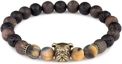 Bulldog Natural Onyx and Lava Rock Beads Bracelet Friendship Jewelry Gift