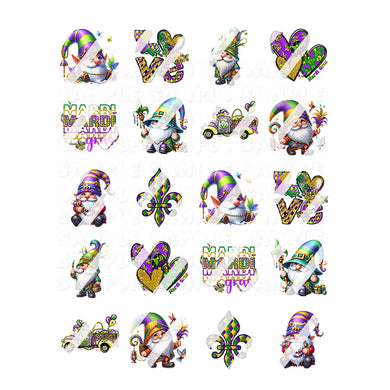 Mardi Gras Party Gnome Design #3 Nail Art Decals- Waterslide Nail Decals