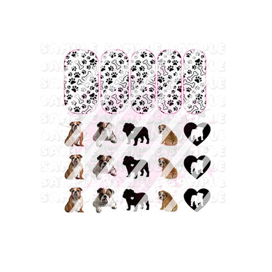 English Bulldog Nail Art Decals - Waterslide Nail Decals - Design #6