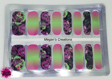 Skulls Pink Green Nail Polish Wraps - Nail Polish Strips