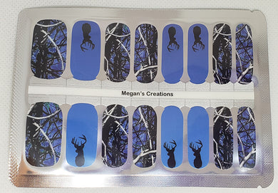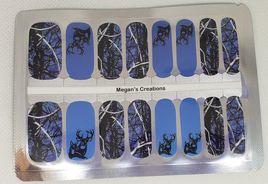 Camo Blue Black Buck Doe Design #11 Nail Polish Wraps - Nail Polish Strips
