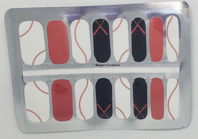Baseball Red & Black Nail Polish Wraps - Nail Polish Strips