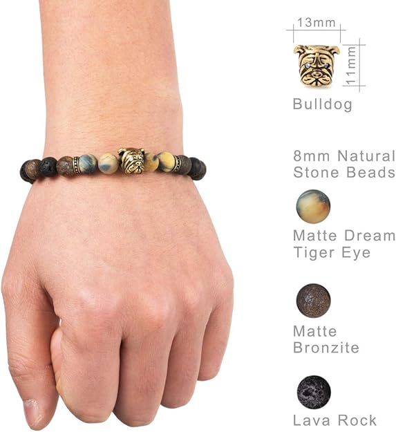 - The 11mm animal charm and 8mm stone beads are connected with a elastic string. 7 inch can be suitable for most wrist, good matching men and women.